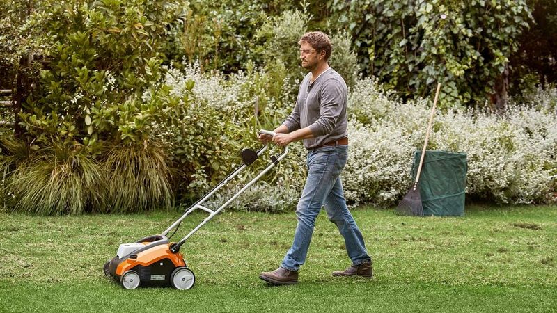 Der Akku-Vertikutierer STIHL RLA 240 verfügt über eine Vertikutierwalze mit 16 feststehenden Messern, um ein- bis zweimal im Jahr, bevorzugt im Frühjahr und im Spätsommer, hartnäckigen Rasenfilz zu zerschneiden und dadurch die obere Bodenschicht wieder durchlässiger für Wasser und Nährstoffe zu machen. Zum Lieferumfang gehört darüber hinaus auch eine Lüfterwalze mit 22 Stahlfedern. Mit dieser können Gartenbesitzer ihren Rasen regelmäßig durchbürsten und dabei abgestorbenes Pflanzenmaterial aus der Rasennarbe herauskämmen. Das bedeutet, dass der STIHL RLA 240, anders als klassische Vertikutierer, ganzjährig zum Einsatz kommen kann. - Kompakt und komfortabel