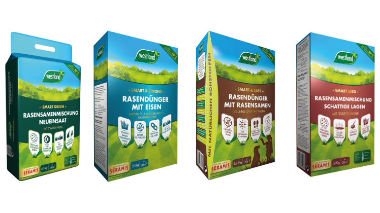 Im Bereich Rasensaaten besitzt das Westland-Sortiment mit Smart Green, Smart Repair und Smart Seed drei Rasensamenmischungen für unterschiedliche Anforderungen: Smart Green ist positioniert als universell einsetzbares Produkt für Neueinsaaten an sonnigen wie schattigen Standorten, aus dem sich auch an stark beanspruchten Stellen zügig eine robuste Rasenfläche entwickelt. Mit Smart Green erfolgen Aussaat und Düngung in einem einzigen Arbeitsschritt, denn die Rasensamenmischung enthält einen Startdünger, der die Samen in der Keimphase optimal mit Nährstoffen versorgt.