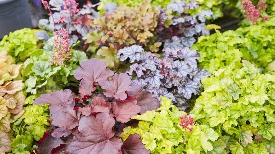 Die Farbpalette von Heuchera reicht von Silbrig-Weiß oder Limonengrün über Orange und Bronze bis hin zu Scharlachrot und Schwarzbraun. Das i-Tüpfelchen dieser ganzjährig schönen Blattschmuckpflanze sind ihre Blüten: Kleine Glöckchen sitzen auf langen, kräftigen Stielen und erscheinen je nach Art zwischen Mai und Juli. Sie werden nicht nur von Menschen, sondern auch von Bienen und Hummeln wegen ihres Angebots an Nektar und Pollen geschätzt.