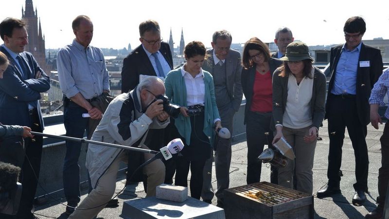 Der Chef der Hessischen Staatskanzlei, Staatsminister Axel Wintermeyer, hat am 28. März 2017 gemeinsam mit der Hessischen Umweltministerin Priska Hinz in Wiesbaden die Kampagne „Bienenfreundliches Hessen“ gestartet. „Für Bienen, Wildbienen, Schmetterlinge und andere Insekten, die für die Bestäubung von Pflanzen notwendig sind, werden die Lebensbedingungen zunehmend schwieriger. 80% unserer Pflanzen sind auf sie angewiesen, um ihre Früchte zu bilden. Deshalb wollen wir gemeinsam die Bedingungen für diese Tiere verbessern und haben die Kampagne „Bienenfreundliches Hessen“ ins Leben gerufen“, sagten der Staatskanzleichef und die Umweltministerin bei der Auftaktveranstaltung in der Hessischen Staatskanzlei. Gemeinsam präsentieren sie auf dem Dach der Staatskanzlei zwei Bienenvölker, zwei weitere werden hinzukommen. „Im Sommer werden so bis zu 100.000 weitere Bienen im Herzen der Landeshauptstadt leben. Damit setzen wir ein sichtbares Zeichen für Bienenfreundlichkeit und den Erhalt der Biodiversität“, sagte der Staatskanzleichef. Tipps und Ansprechpartner liefert die neue Homepage www.bienen.hessen.de. (Gartenbauverband Baden-Württemberg)