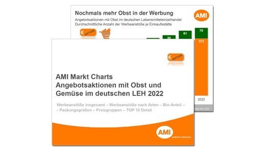 Nutzen Sie die AMI Markt Charts Angebotsaktionen mit Obst und Gemüse im deutschen LEH 2022 und verschaffen Sie sich einen umfassenden Überblick. Die Chartsammlung ist ab sofort lieferbar. Jede PDF-Version hat mehr als 100 Folien und kostet jeweils 567,00 Euro zzgl. 7% MwSt. (AMI)