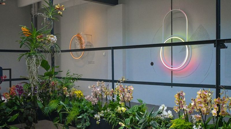 Gemeinsam mit dem Lichtdesignstudio Aptum präsentierten sie die Ausstellung „In Full Bloom". Aptum ist bekannt für seine einzigartigen und maßgeschneiderten Beleuchtungsdesigns. In diesem Jahr hatte sich ihr Studio speziell für diese Veranstaltung in eine lebendige, blühende Welt mit Orchideen verwandelt. Das Ergebnis war ein farbenfroher Blütengarten umgeben von Lichtobjekten in geometrischen Formen.