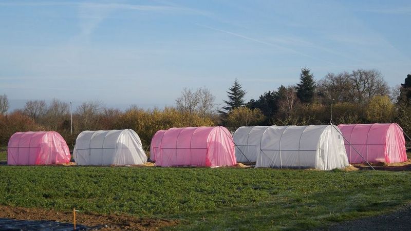Auch in Frankreich wird am Campus du végétal in Angers mit verschiedenfarbigen Folien experimentiert. Dort wurde mit rosafarbigen Folien gearbeitet.