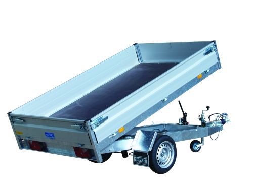 Das nach hinten kippbare Modell C ist jetzt 260 cm lang und 150 cm breit und in 1350kg oder 1500kg Gesamtgewicht erhältlich. Standardmäßig ausgestattet ist der neue C-Kipper mit Aluminium-Borwänden 30cm hoch und einem niedrigen, feuerverzinkten Chassis-Rahmen mit 195/50R13. Weiterhin sind viele Optionen möglich, wie z. B. eine elektrische Pumphydraulik und einer Stahlplatte auf dem Boden montiert oder einer Hackwand als Doppelpendelklappe. (Quelle: Hapert)