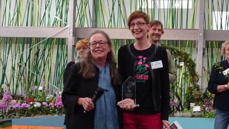 Für Lorenz Ott, Staatliche Fachschule für Blumenkunst Weihenstephan, war die Silberne Rose Anlass, den ehemaligen Präsidenten des FDF in Berlin, Andreas Tunger, mit dem Moritz-Ahrens-Preis auszuzeichnen. In seiner Laudation ehrte er den hervorragenden Floristen für seine Tätigkeit. (DBG)