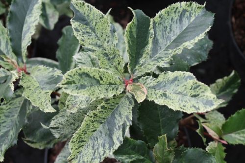Photinia serratifolia Pink Crispy ('Oploo 5'PBR) ist in Europa sortenrechtlich geschützt.