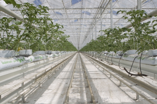 Das Gewächshaus A ist betriebsbereit, die Montagearbeiten sind abgeschlossen und die Heizschlangen verlegt. Zusätzlich sind eine Sortierhalle und Aufenthaltsräume entstanden. Für die notwendige Wärme der Pflanzen sorgt das benachbarte Kraftwerk der RWE Power, damit auf einer Fläche von 110.000 Quadratmetern die angebauten Tomaten gut gedeihen. Das vom Kraftwerk in Kraft-Wärmekopplung bereitgestellte rund 70 Grad warme Wasser sorgt dafür, dass die Gewächshäuser auf eine Temperatur von 20 Grad Celsius gehalten werden. Die Kraftwerkswärme wird vor allem in Schwachlastzeiten, das heißt in der Nacht oder an Wochenenden in einem 5.000 Kubikmeter fassenden Vorratsbehälter gespeichert und bei Bedarf in die Gewächshäuser weitergeleitet.