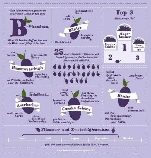 Im deutschen Lebensmitteleinzelhandel sind vor allem 25 unterschiedliche Sorten des beliebten Steinobstes zu finden, weltweit gibt es sogar mehr als 2.000 Varietäten. Grund genug für das Pressebüro deutsches Obst und Gemüse einmal die wichtigsten Facts rund um die große Sortenvielfalt in einer Infografik zusammenzustellen.