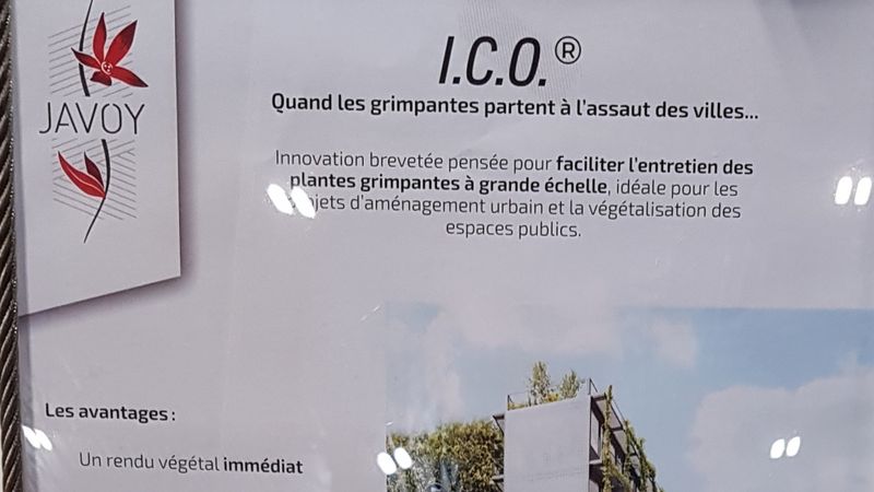 Silber für I.C.O® - Lösung zur abnehmbaren Begrünung von Gebäuden von JAVOY PLANTES PEPINIERES. I.C.O ist eine patentierte Lösung, die es ermöglicht, einen Pflanzenschirm mit variablen Formen zu schaffen, der modulierbar ist und sich an zahlreiche Situationen anpassen lässt, um Schatten zu spenden oder ein Gegenüber zu verbergen. Bild: GABOT.