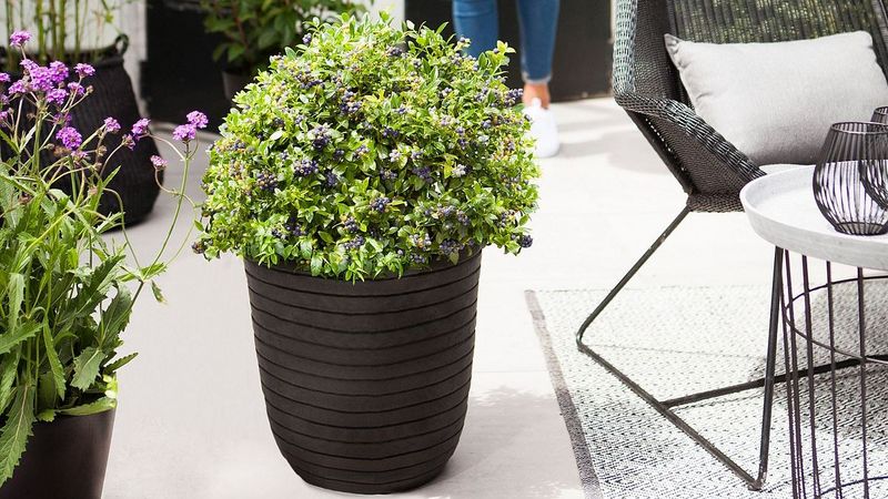 Das absolute Highlight - was gleich zwei Trends auf einmal bedient - ist die neue Sorte Berry Bux® aus dem BrazelBerry® Sortiment. Der Name ist selbsterklärend und sagt eigentlich schon alles: Vom Laub und Wuchs sieht diese kompakte Vaccinium angustifolium dem Buxus zum Verwechseln ähnlich - aber mit einem ganz entscheidenden Mehrwert: zahlreiche, leckere Blaubeeren zum Naschen. Der Ertrag einer kleinen 6 Liter Pflanze ist unglaublich: 1.200 Beeren haben Mitarbeiter der Baumschule in diesem Jahr im Testgarten geerntet. Die Pflanzen machen also nicht nur eine tolle Bux-Baum-Figur im Garten oder Kübel, sondern bringen auch reichlich gesunden Vitamin-Ertrag. Perfekt lässt sich damit auch eine dekorative „Fruchthecke" gestalten, die das ganze Jahr über attraktiv ist. (Quelle: zu Jeddeloh Pflanzen)