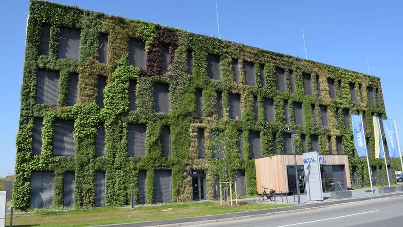 Die neue Verwaltung der Enni-Unternehmensgruppe (Enni) ist modern, funktional und mit ihren drei Fassadenbegrünungen an der Ostfassade, im Innenhof und dem Foyer auch ein viel beachtetes ökologisches Vorzeigeprojekt. Die begrünten Flächen machen aufmerksam, da sie als grüne Lungen in Städten derzeit noch Exoten sind. Für die hier in Moers beheimateten drei Enni-Unternehmen und ihre 600 Mitarbeiterinnen und Mitarbeiter sind sie auch Ausdruck des eigenen ökologischen Selbstverständnisses, das laut dem Vorstandsvorsitzenden Stefan Krämer fest in der Philosophie und der Strategie der Unternehmensgruppe verankert ist.