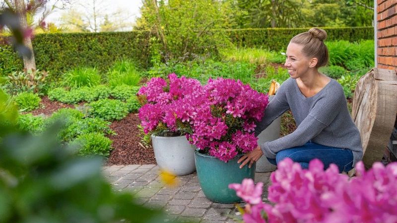 Oberirdisch zeigt Grazeasy sich mit besonderem Blattschmuck: Die dunkelgrün saftigen Blätter sind schmal und grazil geformt, wodurch er das ganze Jahr über ein echter Hingucker ist. Dazu kommt eine pinke Blütenpracht, denn Rhododendron Grazeasy 'Dark Pink' zeigt im Mai und Juni lange seine kräftig purpurfarbenen Blüten, die sich ausdrucksstark von vergleichbaren Sorten abheben. Durch die traubenförmigen Blütenstände entsteht eine Blütenfülle, die das Auge des Betrachters begeistert. Damit hat Grazeasy das volle Potenzial, um ein echter Hingucker in jeder Gestaltung zu werden. Sowohl im Garten als Hecke oder Solitär als auch gepflanzt im Kübel wird er zum Liebling der Endverbraucher, die sich auch als Gartenanfänger über diese pflegeleichte Schönheit freuen dürfen.