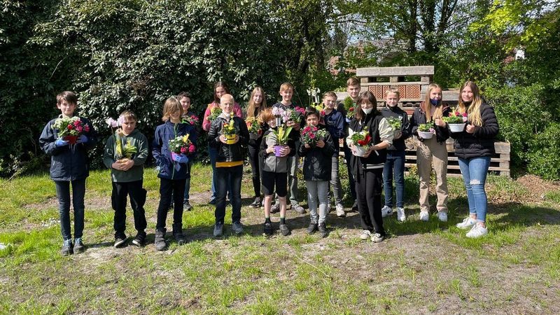 Daran schlossen sich Informationen zum Bestellprozess bei Gartenbau Dehne sowie Betriebsführungen am Standort Wiesmoor und bei Dehne Gartenbau an. Im Bereich Produktaufwertung konnten die Schüler*innen dann selbst aktiv werden und unter fachkundiger Anleitung Schalen bepflanzen.