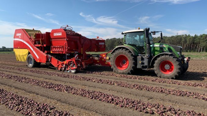 Bei der Ernte kommt dabei das sogenannte zweiphasige System zum Einsatz, bei dem die Zwiebeln nach der Ernte im Schwad abgelegt werden und dort einige Tage trocknen, um robust und lagerfähig zu werden. „Bei Sonnenschein können sie drei bis vier Tage auf dem Feld liegen“, erläutert Helmar Meyer. Der Landwirt aus dem Landkreis Gifhorn ist mit der diesjährigen Ernte nach den beiden sehr trockenen Jahren zufrieden. „Die Bestände sehen sehr gut aus“, sagt er. Dies liege zum einen an den örtlichen Regenschauern und zum anderen an der Beregnung, mit dem er fehlende Niederschläge ausgeglichen hat.