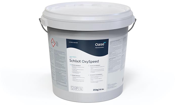 Fast jedes Gewässer hat mit Sedimentbildung durch organisches Material zu kämpfen. Ein Überangebot an Nährstoffen in Gewässern führt zu verstärktem Algenwachstum und letztlich zur Verschlammung, was Faulgase und z.T. giftige Abbauprodukte wie Schwefelwasserstoff freisetzt. Die innovative Lösung SchlixX OxySpeed von OASE Professional bietet sich insbesondere für den Akutfall zur Bekämpfung fauliger Gerüche und toxischer Faulgase an. Mit seiner einzigartigen Wirkstoffkombination schafft es schnelle Abhilfe, indem es den Sauerstoffgehalt im gesamten Gewässer unmittelbar und auch langfristig erhöht.