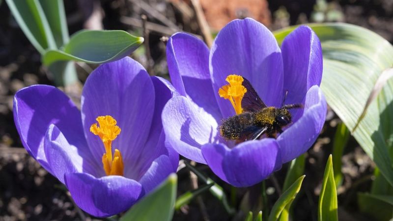 Krokusse (Crocus): Das sind vielleicht sogar die Lieblingsblumen der Bienen. Die Krokusse blühen schon früh im Jahr und liefern hochwertigen Nektar und Pollen. Sie sind bei Honigbienen und auch bei Wildbienen sehr beliebt. Vor allem die Elfen-Krokusse (Crocus tommasinianus) gehören als eine der frühesten blühenden Krokusarten zu den Favoriten.