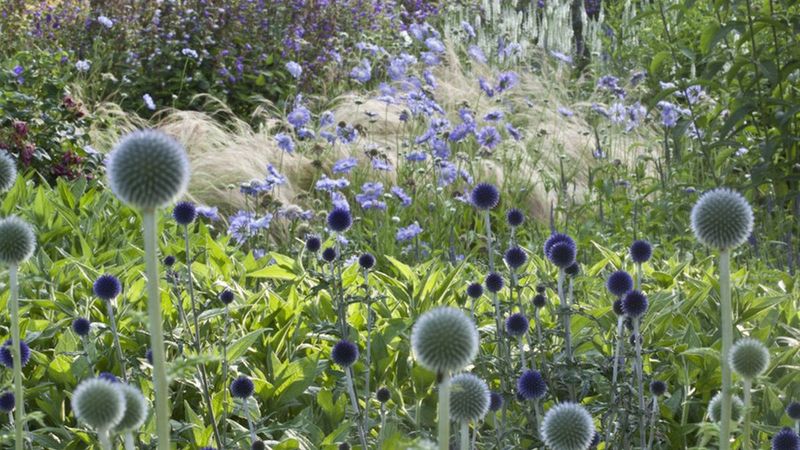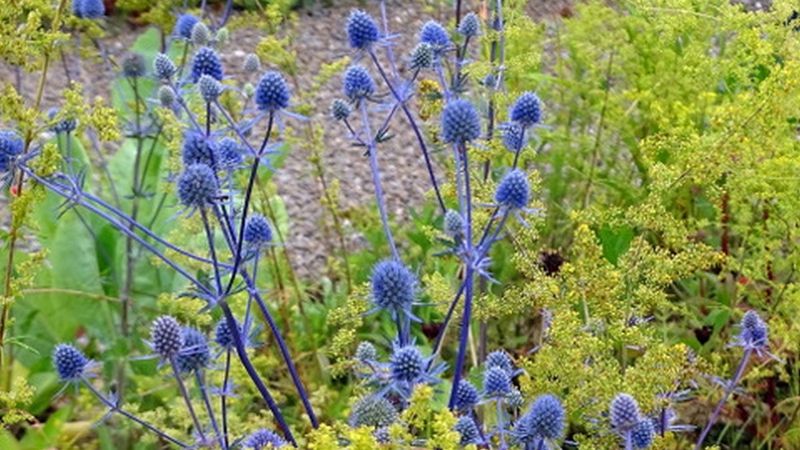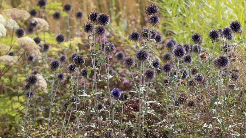 „Gerade die hohen Arten von Eryngium und Echinops sind hervorragende Strukturbildner, die sowohl in Einzelstellung als auch in Gruppen großartig wirken. Es gibt aber auch niedrigere Arten und Sorten, die sich für die vorderen Beetreihen eignen“, erklärt der Samenproduzent und Staudenzüchter.