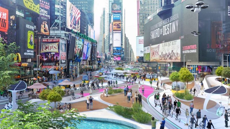 Die nächste Stufe ist, diese wertvolle Fläche nicht nur kosmetisch, sondern auch radikal baulich den neuen Gegebenheiten anzupassen: Bürgersteige und Straße im herkömmlichen Sinne wird es nicht mehr geben. Es besteht die Chance einer völligen Neugestaltung der Flächen zwischen den Gebäuden, welche das zukünftige Stadtbild grundlegend verändern wird. In einer Designstudie versuchen die Architekten von 3deluxe, diese neuen Möglichkeiten am Beispiel des Times Square darzustellen.