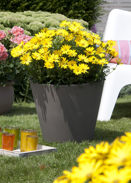Und nun die Wettervorhersage für Bayern: Der Bayerische Gärtnerei-Verband verspricht für die komplette Sommersaison sonnige Aussichten – der ’Lachenden Lucy‘ sei Dank. Das Kapkörbchen (Osteospermum) mit den leuchtend gelben Blüten lässt auf Balkon und Terrasse jeden Tag aufs Neue die Sonne aufgehen. Und zwar selbst dann, wenn es davon reichlich gibt: Bei anhaltender Hitze legen viele Kapkörbchen-Züchtungen gerne einmal eine Blühpause ein, um dann gegen Herbst noch einmal durchzustarten. Die ’Lachende Lucy‘ hingegen braucht kein Hitzefrei.