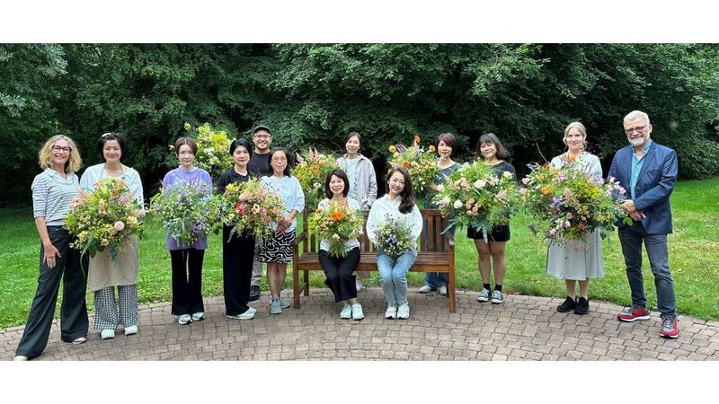 Die Gäste kommen vom Flower Time International Art Institute in Taiwan unter Leitung von Yu-Ting Lai. Zum Seminarstart haben die Taiwanesen die Floristmeister-Ausstellung im FloristPark besuchten. FDF-Referentin Thea Kornherr unterrichtet die Gruppe. Schon am ersten Unterrichts-Tag sind wunderbare Sträuße entstanden. Vor Corona im Sommer 2019 waren Studentinnen vom Flower Time International Art Institute zuletzt beim FDF zu Gast. Damals fand ebenfalls ein Zertifikatslehrgang "Floral-Arrangeur" statt. Schulleiterin Yu-Ting Lai: "Wir haben uns sehr auf den Besuch und das Seminar im FloristPark gefreut, denn wir schätzen die Qualität der deutschen Floristik-Ausbildung sehr!" Das sei eine hervorragende Basis, um erfolgreich in Taiwan floristisch zu arbeiten. Vorstandsmitglied Michael Rhein bestätigte in seiner Begrüßung, dass die Gruppe in Thea Kornherr ein ausgezeichnete Fachreferentin habe, die mit viel Erfahrung, Knowhow und Einfühlvermögen die taiwanesischen Student*innen auf die Prüfung vor der IHK Nord-Westfalen vorbereiten würde. Die Abschlussprüfung findet am 1. August im FloristPark statt. (FDF)