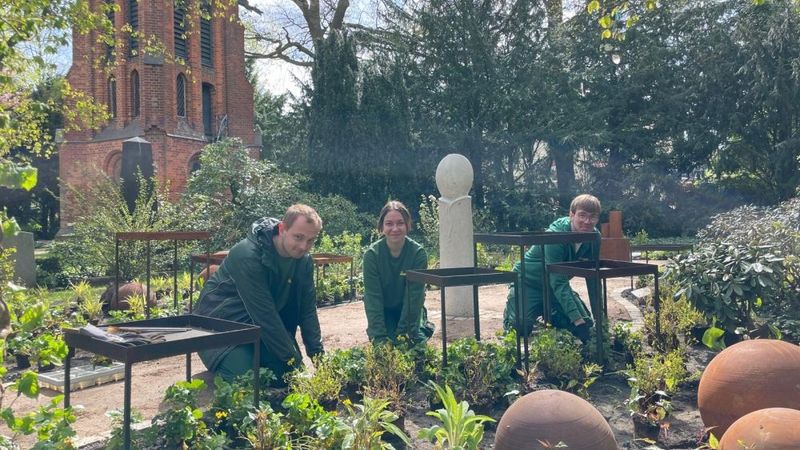 In dieser Woche soll ein neues Grabfeld für Sternenkinder eingeweiht werden. Die Gärtnerei Hinze aus der Lübecker Friedhofsallee beteiligt sich aktiv an den Vorbereitungen. In enger Zusammenarbeit mit Matthias Beth, renommierter Gärtnermeister und Inhaber der Gärtnerei Reindorf, haben die drei Auszubildenden des Familienunternehmens Hinze, Nike Wolgast, Melvin Behme und Carsten Krüger sowie Beth´s Auszubildender Benjamin Beyer, liebevoll Stauden auf der neuen 50 Quadratmeter großen Fläche gepflanzt. Die Planung der Bepflanzung erfolgte durch Martina Malzkorn, Leiterin des St. Lorenz Friedhofes.