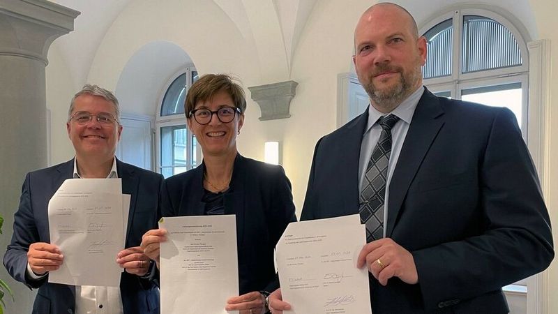 Am 27. Mai 2024 wurde eine mehrjährige Leistungsvereinbarung zwischen dem Kanton Thurgau, vertreten durch Regierungsrätin Monika Knill, Chefin des Departementes für Erziehung und Kultur, und der OST, repräsentiert durch Rektor Prof. Dr. Daniel Seelhofer und den Leiter des Departements Technik, Prof. Dr. Knut Siercks, unterzeichnet. Die Vereinbarung regelt den Betrieb des neuen Instituts für Intelligente Systeme und Smart Farming der Land- und Ernährungswirtschaft (ISF) der OST am Standort Tänikon im Auftrag des Kantons Thurgau für die erste Phase von 2025 bis 2028. Diese Vereinbarung markiert einen entscheidenden Schritt zur nachhaltigen Förderung der Hochschulaktivitäten im Bereich der innovativen Land- und Ernährungswirtschaft im Kanton Thurgau. Die OST gründet in Tänikon ein Institut und schafft damit neue Forschungsarbeitsplätze im Kanton. "Das neue Institut der OST stärkt den interdisziplinären Forschungsstandort Tänikon und verleiht ihm zusätzliche Strahlkraft für die Schweiz und über ihre Grenzen hinaus", sagt Monika Knill. Bei der Unterzeichnung war auch Regierungsrat Walter Schönholzer, Chef des Departementes für Inneres und Volkswirtschaft, anwesend, was die Bedeutung der neuen Hochschulkooperation für den Kanton Thurgau unterstreicht.