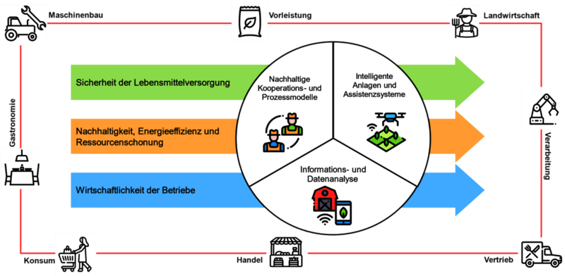 Um die gemeinsamen Ziele zu erreichen, verfolgen der Kanton Thurgau und die OST klare Stoßrichtungen, die auf den drei strategischen Handlungsfeldern "Sicherheit der Lebensmittelversorgung", "Wirtschaftlichkeit der Betriebe" und "Nachhaltigkeit, Energieeffizienz und Ressourcenschonung" basieren. Ergänzt werden sie durch drei Fokusthemen: "nachhaltige Kooperations- und Prozessmodelle", "Informations- und Datenanalyse", sowie "intelligente Anlagen und Assistenzsysteme".