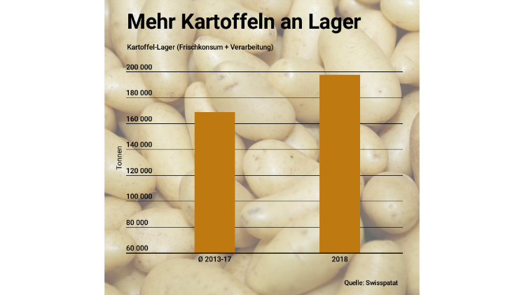 In der Schweiz lag die Kartoffelernte 2018 bei 197.708 t und somit über dem Durchschnitt der letzten fünf Jahre. Von 2013 bis 2017 beliefen sich die Erntemengen auf durchschnittlich 168.730 t.