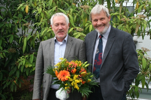 Lüder Nobbmann, Vorsitzender des Bundes deutscher Friedhofsgärtner (BdF), gratulierte Gustav Treulieb im Namen des gesamten gärtnerischen Berufsstandes zu seiner neuen, verantwortungsvollen Aufgabe. Am Rande einer gemeinsamen Arbeitssitzung, die beide Verbände am vergangenen Freitag in Frankfurt abhielten, überreichte er dem neuen Bundesinnungsmeister einen Blumenstrauß und richtete hoffnungsvolle Worte an den Gewählten: „Wir freuen uns über ihre Wahl in diese wichtige Funktion. Dies freut uns auch deshalb besonders, da wir schon seit einigen Monaten vertrauensvoll an gemeinsamen Projekten im Sinne beider Berufsstände arbeiten und wir ihre konstruktive Art schätzen gelernt haben. Mit ihrer Wahl schauen wir nun hoffnungsvoll in die Zukunft und sind sicher, diese Projekte auch in die Realität umsetzen zu können.“