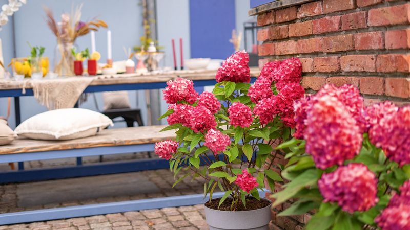 Weiterhin sehr beliebt ist auch die Rispenhortensie 'Bloody Marie'. Endverbraucher sind vor allem von der zweifarbigen Optik der Hydrangea begeistert. Die bis zu 30 cm großen Blüten öffnen sich in Cremeweiß und verfärben sich im Sommer kräftig Rot. Durch den kompakten Wuchs erscheint die gesamte Rispe sehr voluminös und wird zum Blickfang im Kübel auf Terrasse und dem Balkon oder im Beet. 'Bloody Marie' wird im 5-Liter-Topf angeboten und verfügt über ein auffälliges Packaging, um das Interesse beim Fachpublikum zu wecken. Das ansprechend gestaltete Etikett sowie Werbematerialien wie Flyer, Plakate, Banner und Palettenhussen im Corporate Design ziehen die Aufmerksamkeit der Konsumenten auf sich und regen zum Impulskauf an. Eine eigene Website für Endverbraucher sowie umfassende Kampagnen in den Print- und Online-Medien wie beispielsweise Zeitschriften aus dem Garten-, Wohn- und Lifestyle-Bereich unterstützen die Vermarktung zusätzlich. Aufgrund der hohen Nachfrage plant Behrens Jungpflanzen auch hier die Stückzahlen im kommenden Jahr zu erhöhen.
