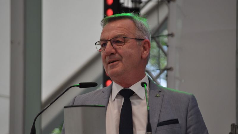Jürgen Mertz, Präsident des Zentralverband Gartenbau e. V. lobte den Mut der BUGA Erfurt 2021 auch unter schwierigen Bedingungen zu öffnen und gärtnerische Wettbewerbe zuzulassen. Viele Aussteller konnten nun auf einem Festakt mit Ehrenpreisen und der Großen Goldmedaille der Deutschen Bundesgartenschau-Gesellschaft ausgezeichnet werden. Bild: DBG.