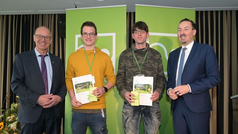 Im Rahmen der Mitgliederversammlung erfolgten Ehrungen durch FGL-Präsident Heger und Staatssekretär Conz. Kevin Genzel und Leonhard Kuge wurden als Vertreter des Landesverbandes Hessen-Thüringen für ihre erfolgreiche Teilnahme am Bundes-Landschaftsgärtner-Cup 2019, dem Berufswettbewerb der Nachwuchskräfte, auf der Bundesgartenschau in Heilbronn geehrt.