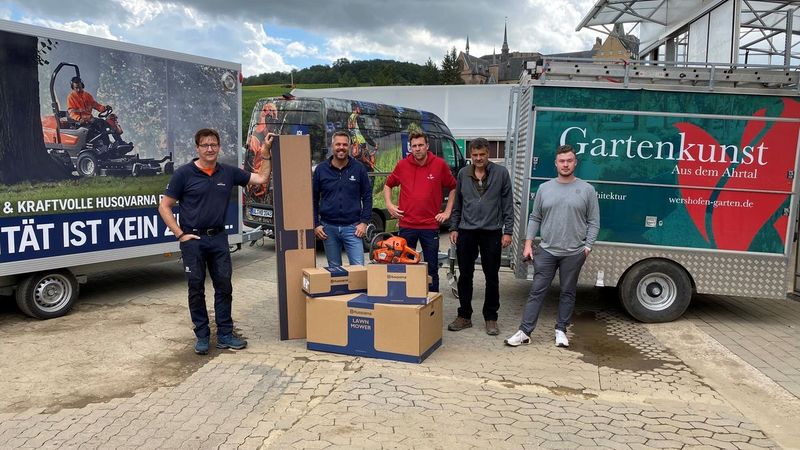 Bis die regulären Kompensationsmechanismen greifen, unterstützt Husqvarna in Kooperation mit den Ehrenamtlichen von „To all Nations e.V.“ die GaLaBau-Betriebe in Not und stellt diesen handgeführte Geräte.