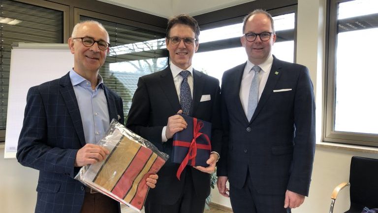Johann Wimberg bedankte sich für die Einladung, sich als Landrat bei Klasmann-Deilmann vorstellen zu können. „Es ist mir wichtig, den engen Kontakt zur Wirtschaft zu pflegen“, so Wimberg. „Unternehmen wie Klasmann-Deilmann sind das Rückgrat unserer Heimatregion. Deshalb suchen wir den Austausch, deshalb wollen wir Ansprechpartner sein, deshalb achten wir auf kurze Wege. Aus dem Dialog entsteht Zukunft.“