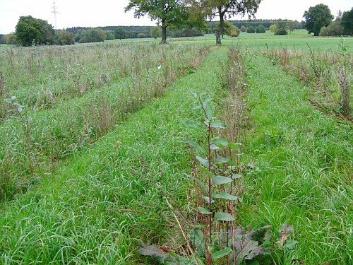 Im Anschluss wurden zwei Pappelplantagen der Firma Dorr besichtigt. Die Gewächse der ersten Plantage waren circa 1,2 Meter hoch; sie wurde letztes Jahr angelegt. Die zweite Plantage wurde schon vor zwei Jahren angepflanzt und hat mittlerweile eine Höhe von etwa 3 Metern.