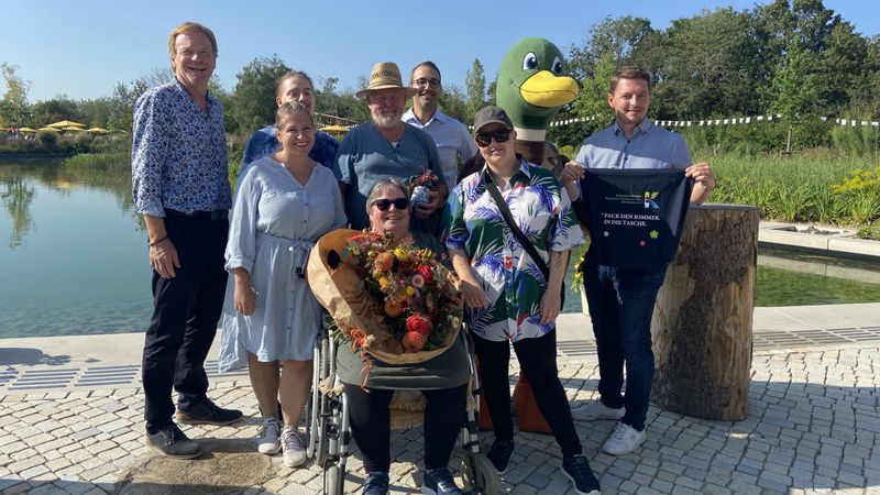 Mit lauten Jubelschreien hat Familie Popp aus Wolnzach (Landkreis Pfaffenhofen a.d. Ilm) an diesem Dienstag die Glückwünsche zur 400.000sten Besucherin auf der Bayerischen Landesgartenschau Kirchheim gefeiert! Der Familienausflug war anlässlich des 65. Geburtstages von Mama Irene Popp im Juli geplant worden – und das Glück wollte es, dass die Gruppe genau diesen sonnigen September-Dienstag für ihren Besuch ausgewählt hatte.