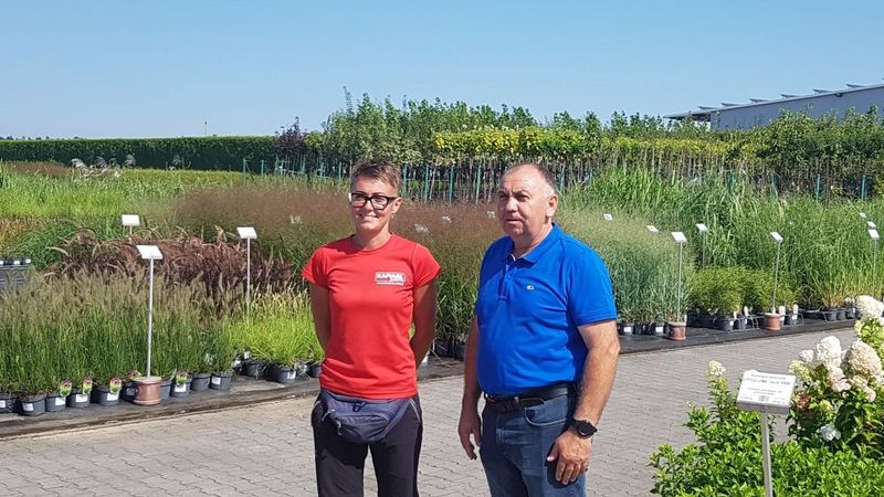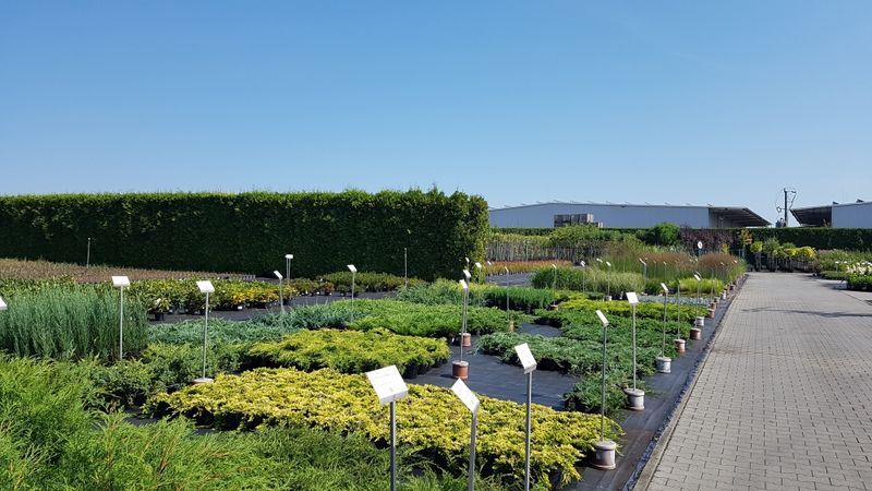 Heute umfasst die Farm eine Fläche von 22 ha, von denen 17 ha von dem Baumschulbetrieb eingenommen werden. Früher lag der Anbauschwerpunkt bei Koniferen, heute werden auch viele Laubgehölze und Stauden kultiviert. Der Großteil der Pflanzen wächst in Containern heran, wodurch sie unabhängig vom Wetter fast das ganze Jahr über zu vermarkten sind. Dafür nutzt man bei Kapias den eigenen Webshop und eine Art Cash- und Carry-Model, so dass die Kunden immer schnell und unkompliziert an die gewünschte Ware kommen. Hier sind die Kinder von Wojciech Kapias - Ania und Łukasz - besonders involviert. 70% der erzeugten Produkte werden auf diesem Weg vermarktet, 30% gehen in den Export, meist nach Südosteuropa. Der Einstieg um Produkte auch nach Westeuropa zu vermarkten sei schwierig, berichtet Wojciech Kapias.