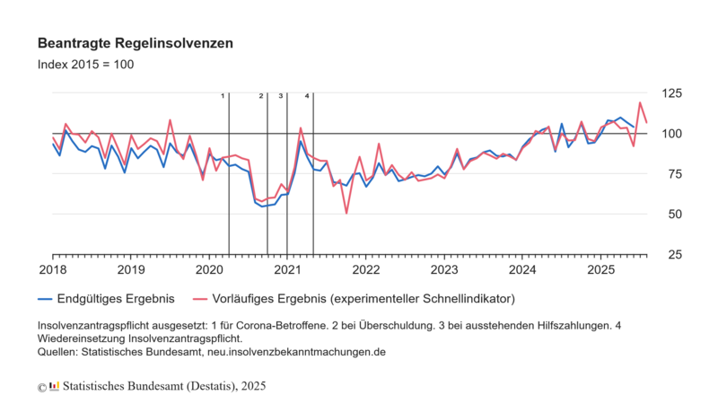 12,2% mehr Unternehmensinsolvenzen im 1. Halbjahr 2025 als im 1. Halbjahr 2024